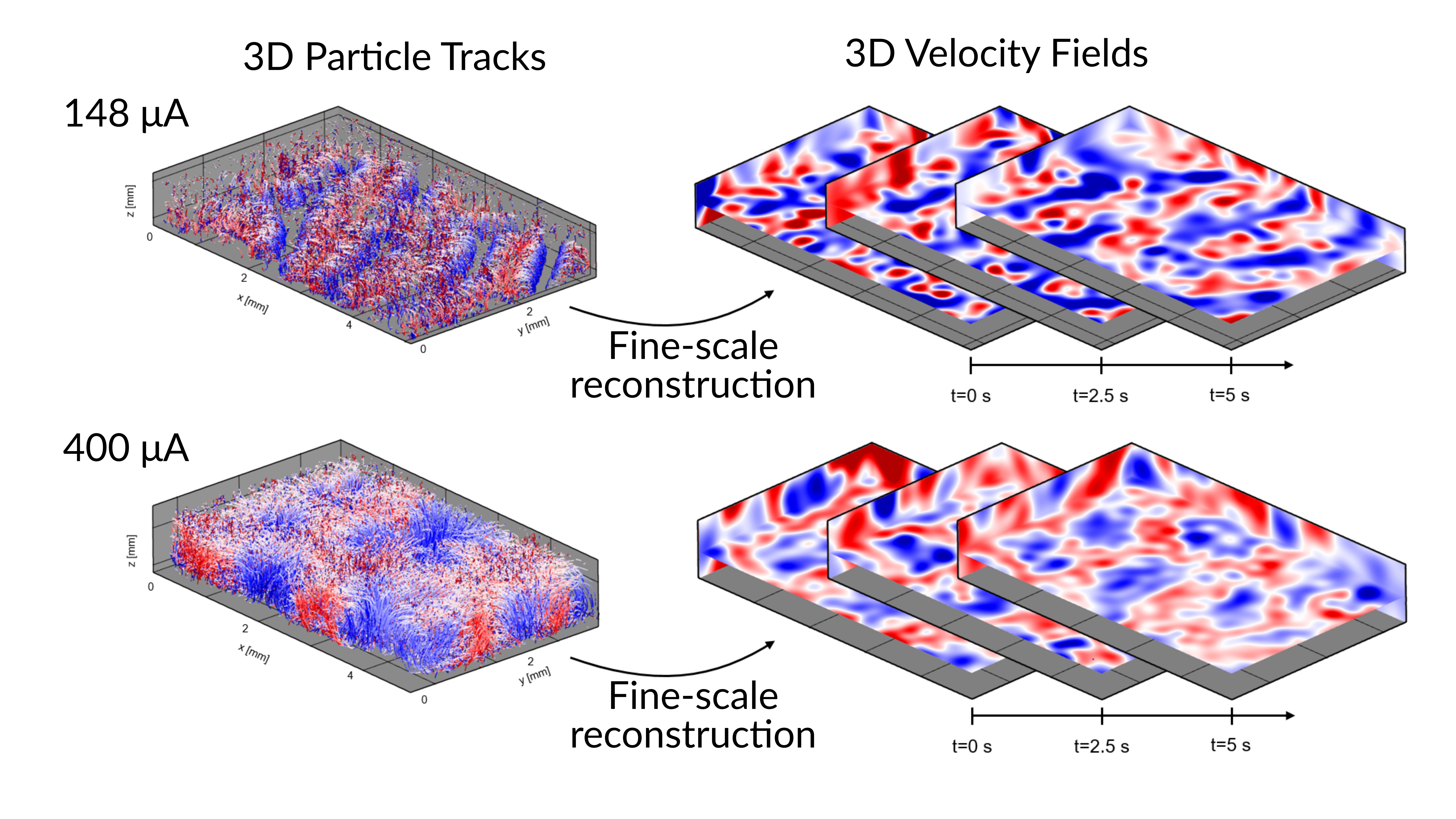 We perform microparticle tracking velocimetry (μ-PTV) experiments [4] to measure 3D, space-time-resolved velocity fields for use in our numerical procedure (the Macroscopic Forcing Method), circumventing the need for expensive 3D simulations.
